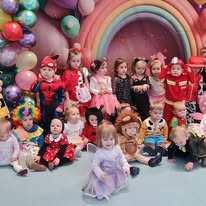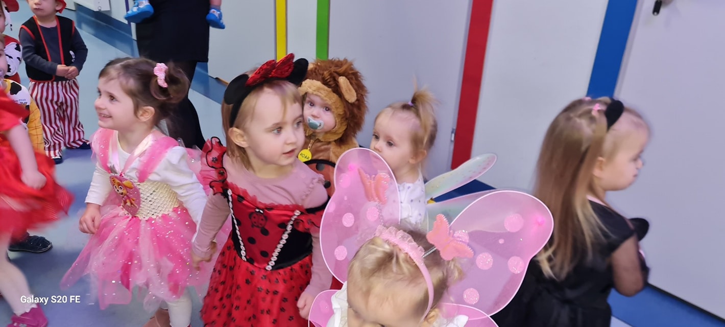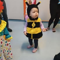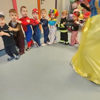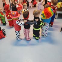 Dzień balu karnawałowego w żłobku był pełen radości, śmiechu i kolorów! Wszystkie maluchy przyszły tego dnia w karnawałowych nastrojach, gotowe do zabawy. Sala została udekorowana kolorowymi balonami i girlandami , tworząc niesamowity, magiczny świat. Dzieci przebrane za różne postacie – księżniczki, piratów, zwierzątka i superbohaterów – tańczyły i bawiły się przy wesołej muzyce, a opiekunki pomagały w organizacji różnych zabaw. Były tańce w kółeczku, zabawy z balonami, a także konkursy, które dostarczały wszystkim mnóstwo emocji. Uśmiechnięte maluchy cieszyły się każdą chwilą spędzoną w tym magicznym dniu a na ich twarzach gościła radość i zadowolenie z niezapomnianej zabawy!