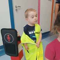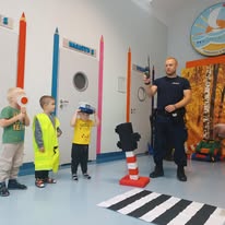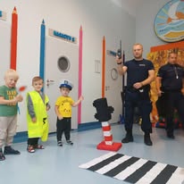 W naszym żłobku mieliśmy przyjemność gościć policjantów, którzy przeprowadzili spotkanie edukacyjne z dziećmi na temat zasad bezpieczeństwa na drodze. Funkcjonariusze wyjaśnili maluchom, jak ważne jest przestrzeganie zasad ruchu drogowego, zarówno jako pieszy, jak i pasażer. Dzieci miały okazję zobaczyć policyjny sprzęt, a także uczestniczyć w krótkiej zabawie, która pozwoliła im utrwalić zdobytą wiedzę. Spotkanie było nie tylko pouczające, ale także pełne radości i interakcji, dzięki czemu dzieci z większą uwagą będą podchodzić do kwestii bezpieczeństwa na drodze. To był niesamowity dzień, który zostanie w pamięci dzieci na długo!