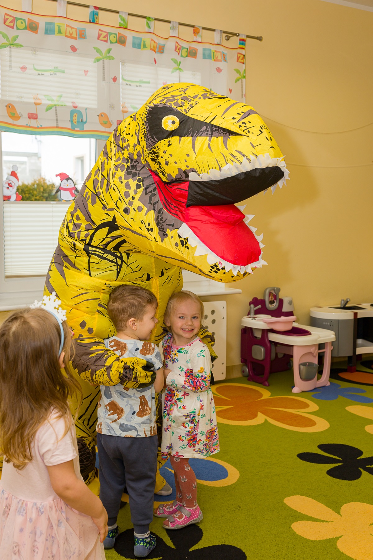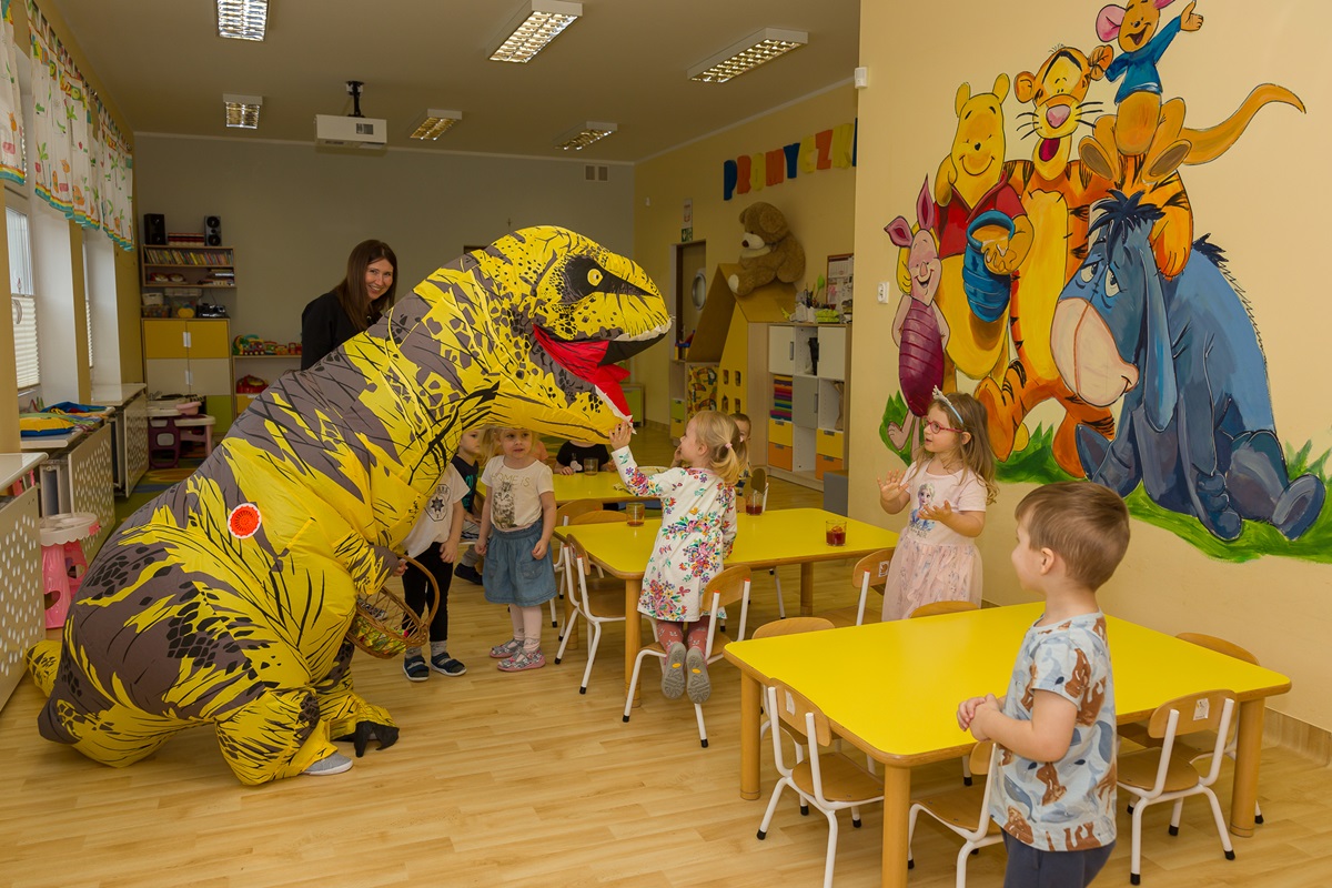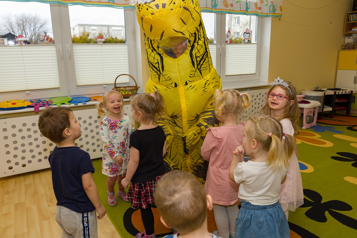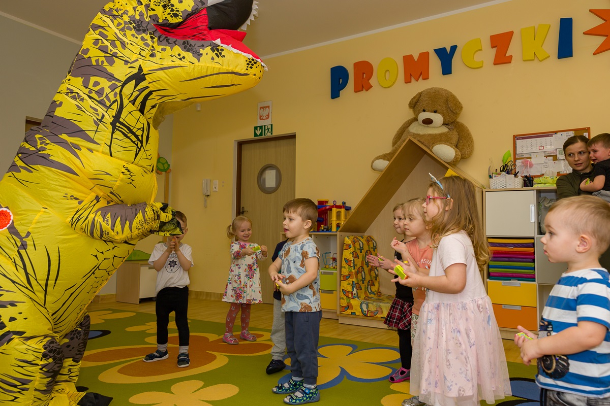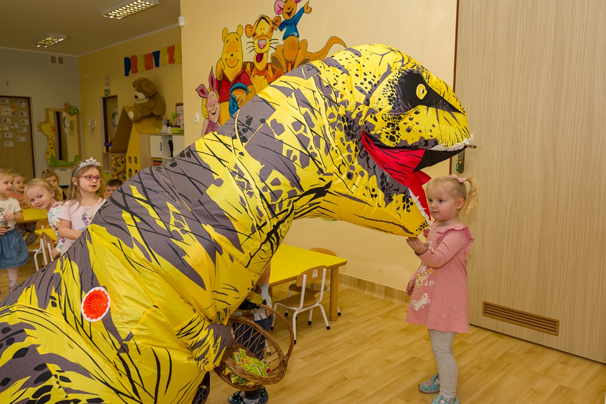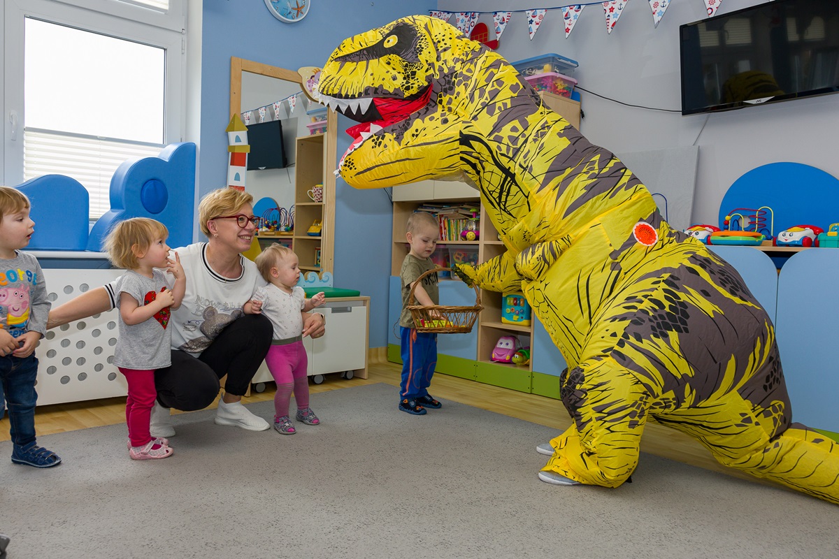 Światowy Dzień Dinozaura, który nasz żłobek obchodził 25 lutego, to doskonała okazja, aby dzieci poznały pradawnych mieszkańców Ziemi ich zwyczaje, zachowanie oraz cechy szczególne. Z tej okazji dzieci przygotowały piękne prace plastyczne. Tego dnia również wybraliśmy się do przedszkola na niesamowitą wystawę różnych gatunków dinozaurów i na ten moment przenieśliśmy się do czasów prehistorycznych. Zawitała do nas Pani Dyrektor z wielkim dinozaurem, z którym dzieci tańczyły i bawiły się wesoło. Na pożegnanie dzieci dostały mały upominek.