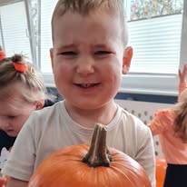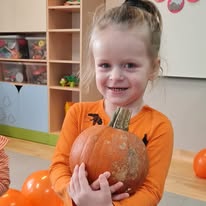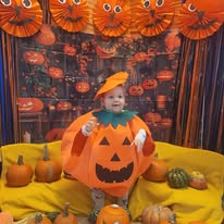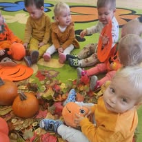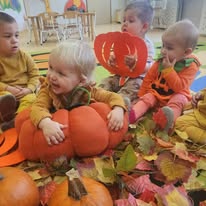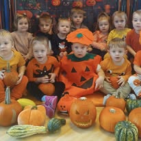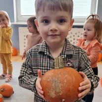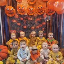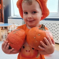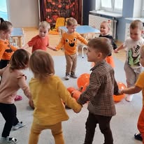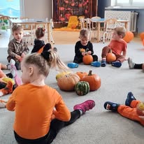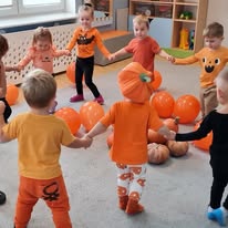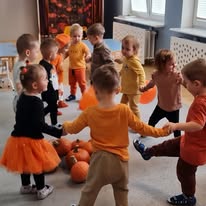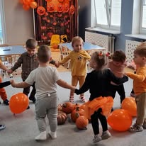 W naszym żłobku wspólnie bawiliśmy się podczas pełnego kolorów Dnia Dyni. Dzieci przebrane za małe dynie brały udział w różnorodnych zabawach i aktywnościach, które wprowadziły je w radosny nastrój. W trakcie dnia dzieci miały okazję poznać różne gatunki dyni, a także uczestniczyć w zabawach sensorycznych, takich jak dotykanie, oglądanie i smakowanie dyni. W ramach zajęć plastycznych mali artyści tworzyli kolorowe prace. Nie zabrakło również dyniowych rytmów, gdzie dzieci śpiewały wesołe piosenki oraz tańczyły do melodii związanych z tym jesiennym warzywem. Dyniowa przygoda pełna śmiechu, zabawy i kreatywnych aktywności z pewnością pozostanie na długo w pamięci naszych maluszków!