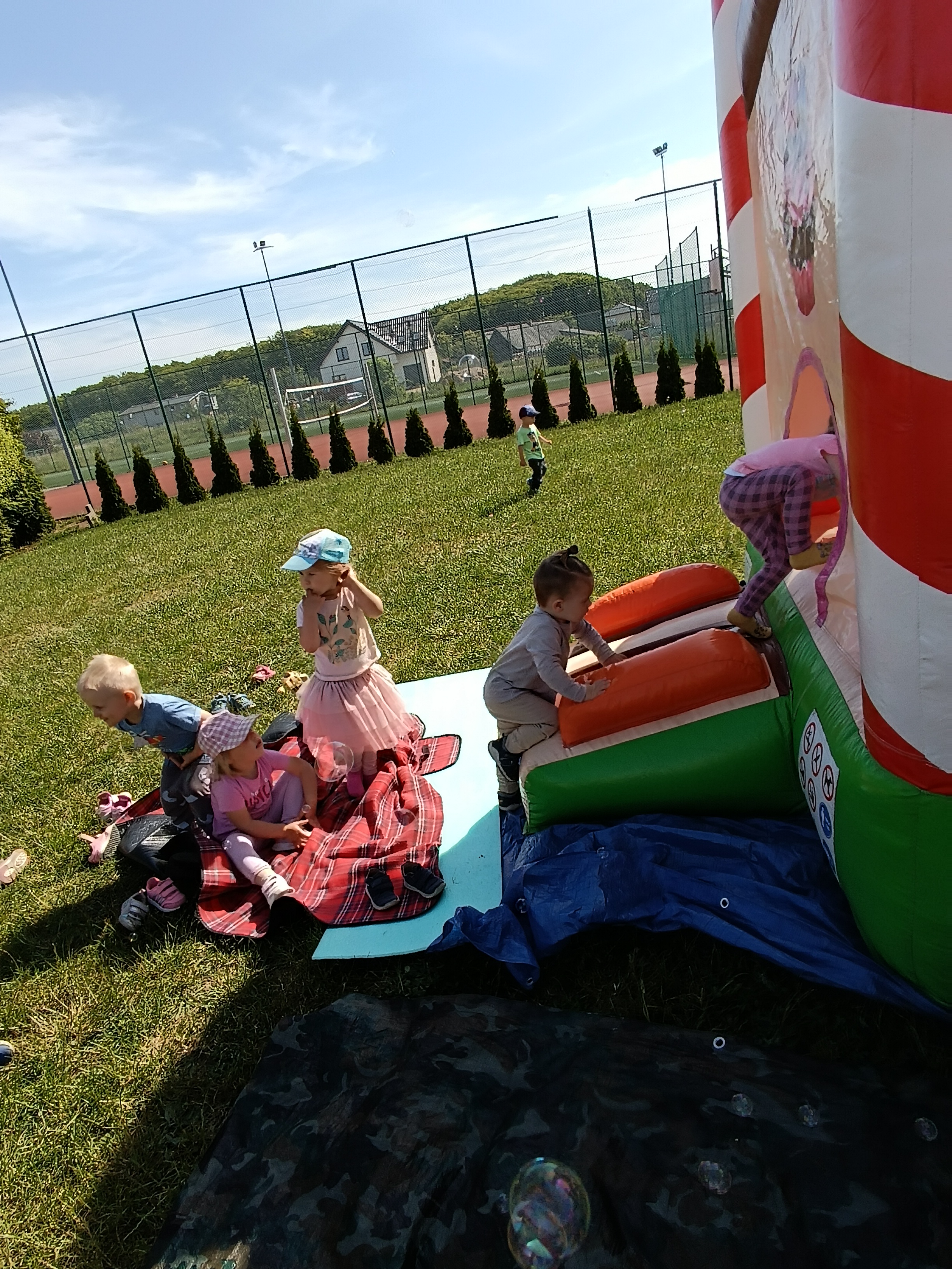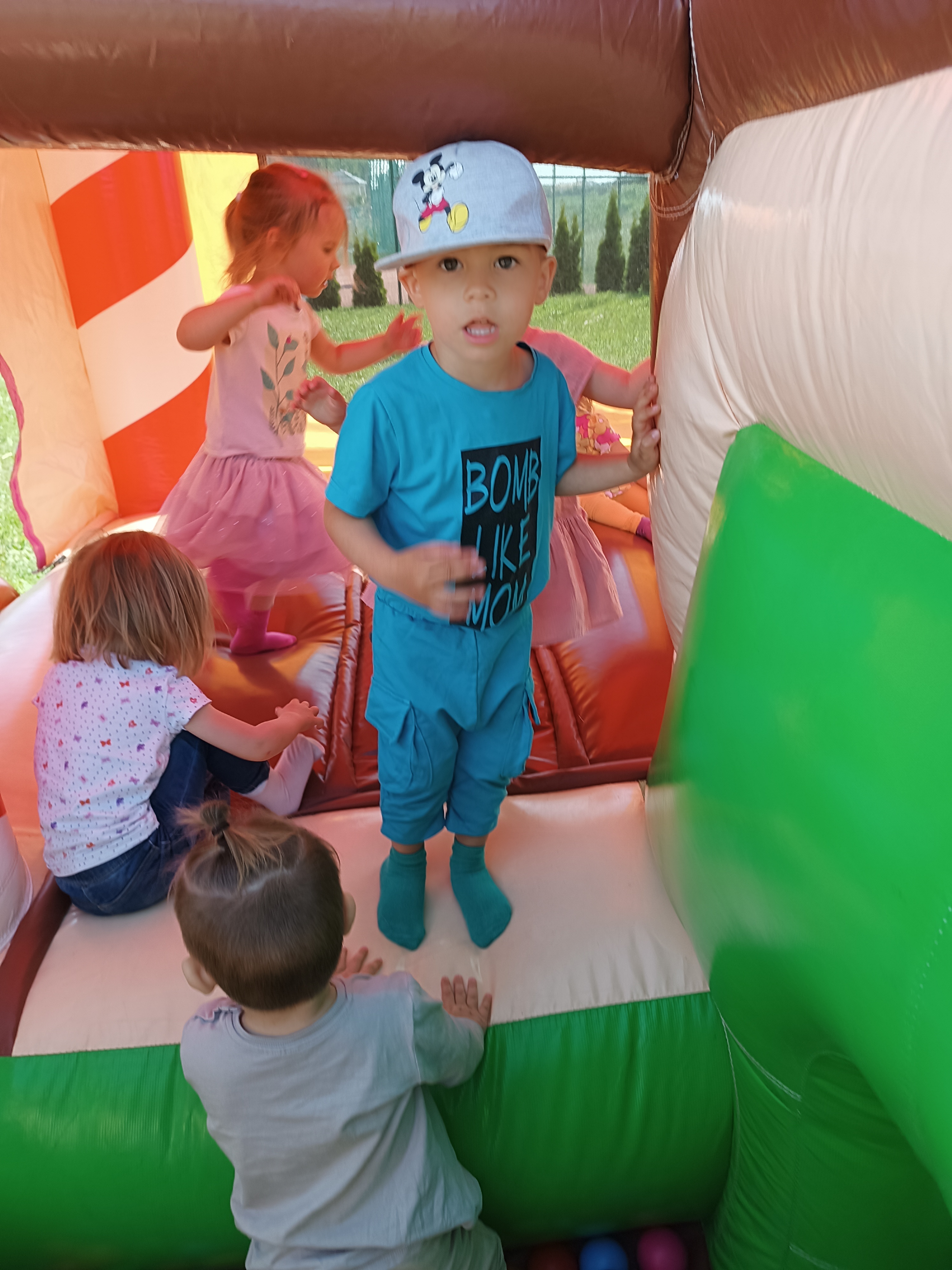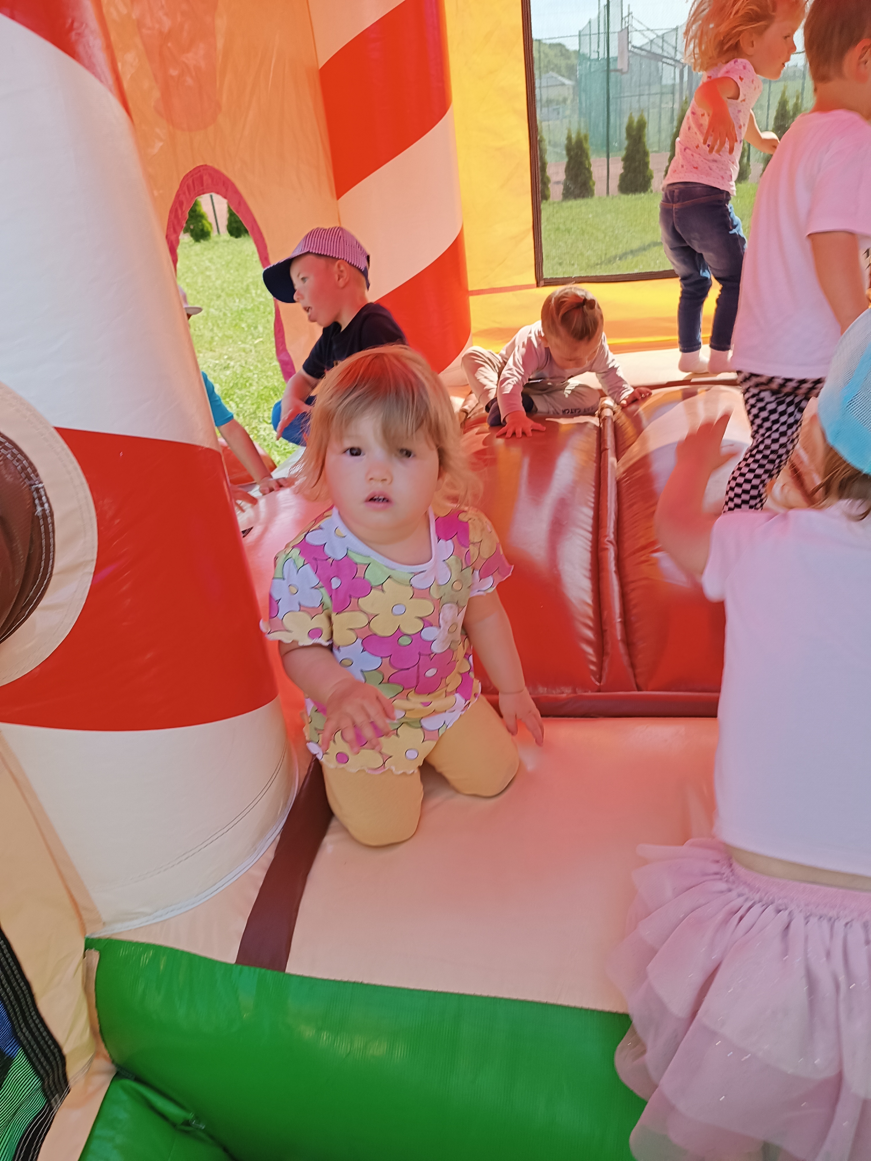 Dzień Dziecka to święto, które uwielbiają wszystkie dzieci, te małe i te duże. To dzień pełen uśmiechów, zabawy, niespodzianek, radości i wielu niezapomnianych wrażeń! W Naszym Żłobku tego dnia również nie zabrakło atrakcji. Były tańce, zabawy z chustą, upominki, pyszny poczęstunek, zamek dmuchany, kolorowe balony wiele innych niespodzianek.