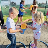 Nasz żłobek wziął udział w corocznym Festynie Rodzinnym, który odbył się w radosnej atmosferze pełnej zabawy i rozrywki. Festyn jak zawsze był wspaniałą okazją do integracji całej lokalnej społeczności. Dzieci ze starszej grupy Promyczki miały okazję zaprezentować swoje umiejetnosci taneczne i wokalne podczas wystepów, które zachwyciły wszystkich zebranych gości. Festyn był również pełen emocji dzięki loterii fantowej, konkursom z nagrodami i pysznościami serwowanymi dla małychi dużych uczesników tej wspaniałej imprezy. Idealnym przysmakiem w te,, gorace popołudnie były gofry i lody sprzedawane przez ciocie ze żłobka. Dziękujemy wszystkim za wspólne świętowanie i niezapomniane chwile