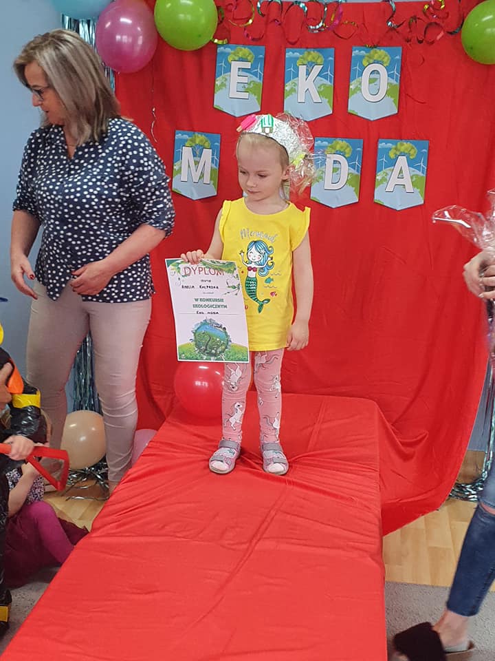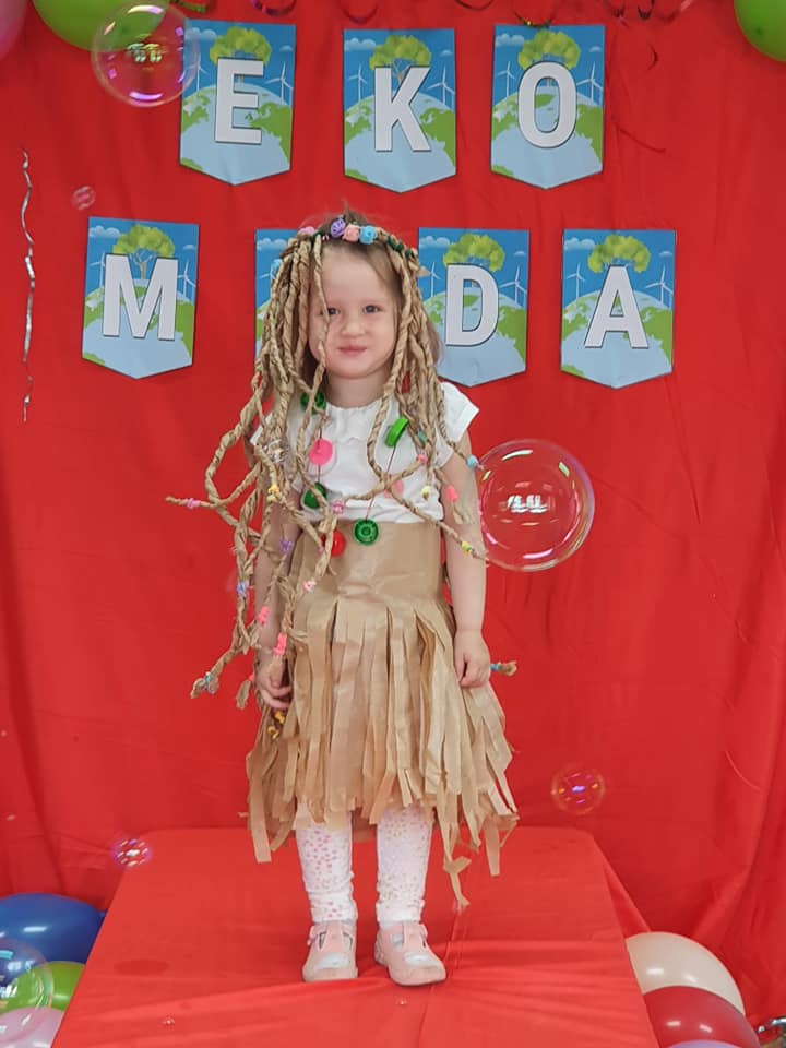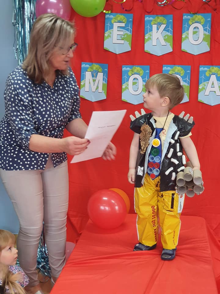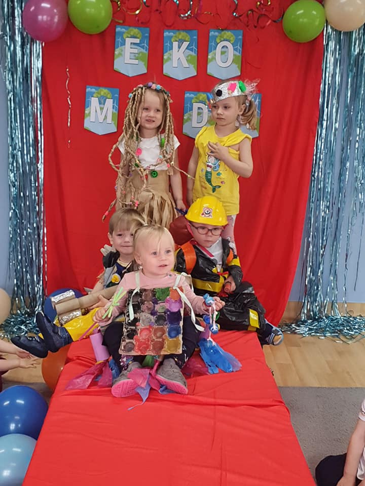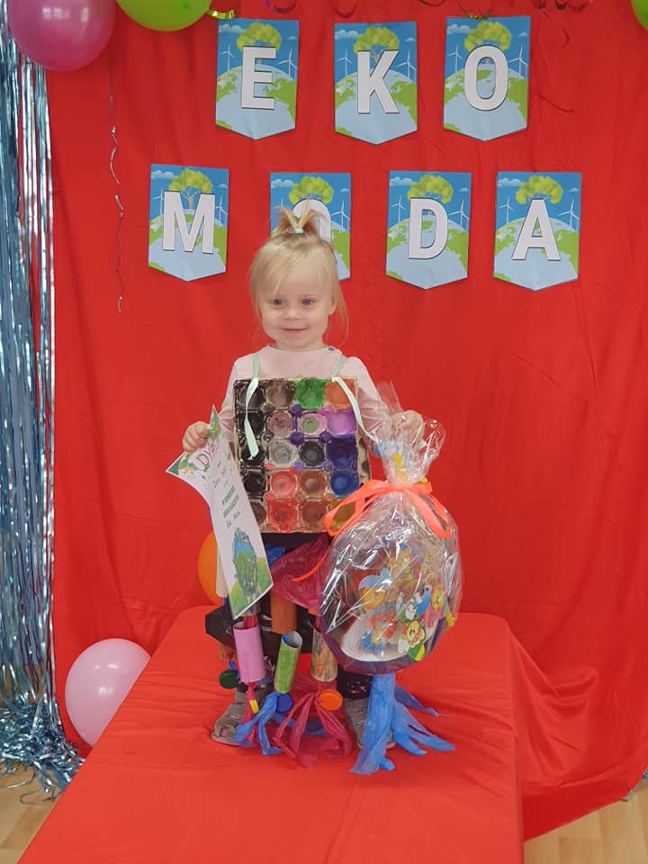 Eko moda Panie i panowie jedyny i niepowtarzalny pokaz eko mody lepszy niż z paryskich wybiegów! Spójrzcie i podziwiajcie prześliczne małe modelki i przystojnych małych modeli! Nasze dzieci zaprezentowały bardzo pomysłowe stroje wykonane wraz z rodzicami z różnorodnych materiałów przeznczonyh do recyklingu. Celem tego wyjątkowego pokazu było zwrócenie szczególnej uwagi naszych Maluchów na konieczność ochrony środowiska naturalnego poprzez właściwe zachowania. A kiedy idzie to w parze z dobrą zabawą należą się tylko wielkie brawa!