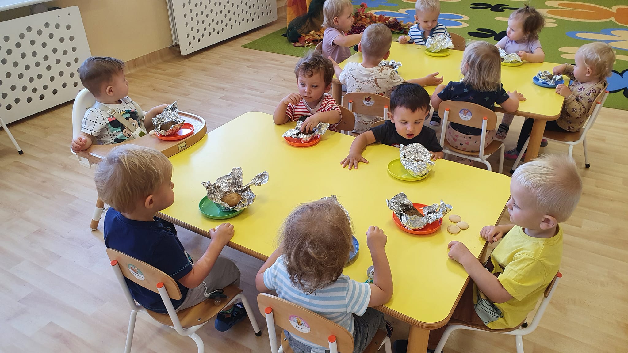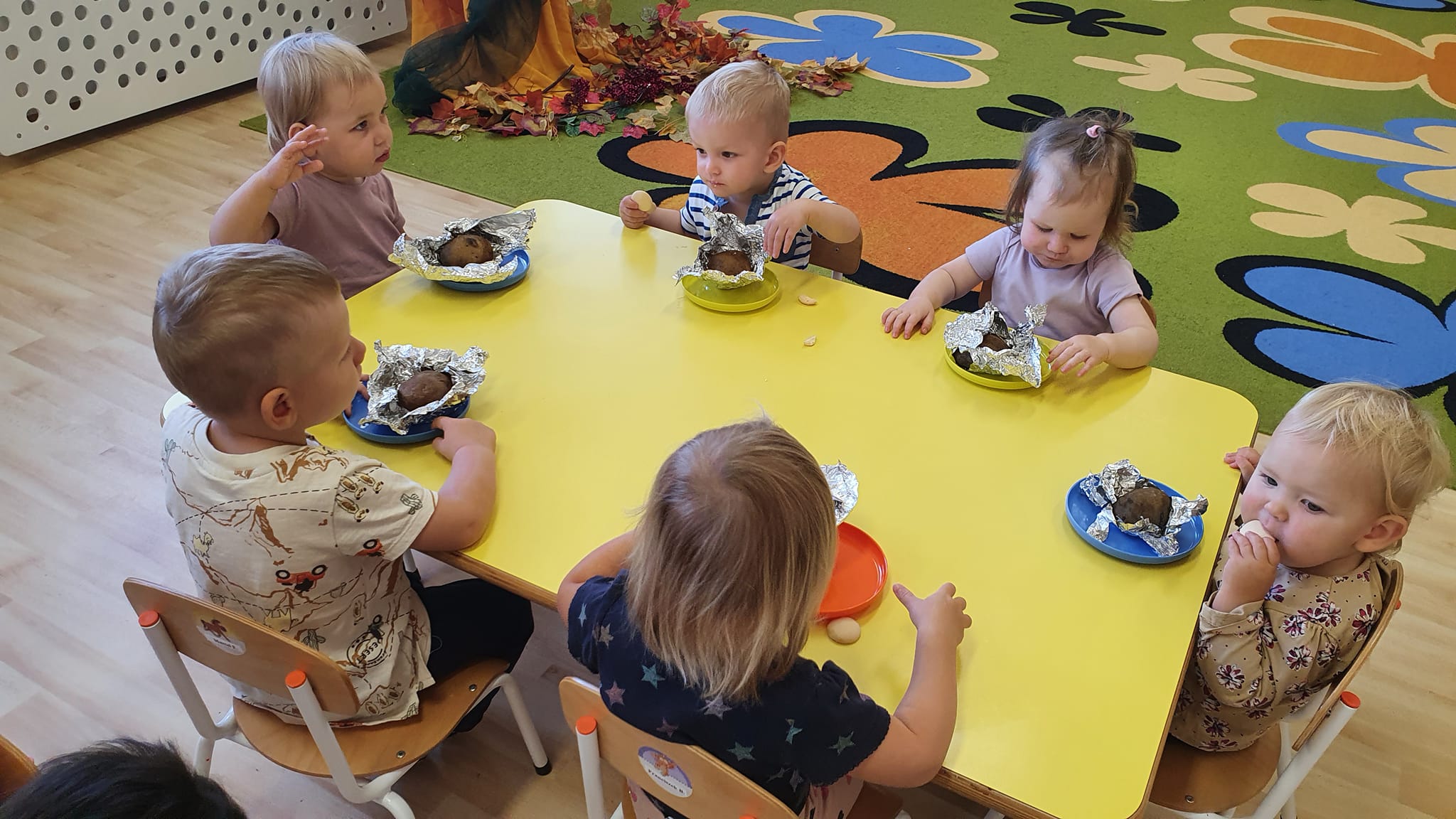 Witamy Panią Jesień w naszych żłobkowych progach. Niestety, ale lato musieliśmy już pożegnać. Na dworze zrobiło się zdecydowanie chłodniej i częściej pada deszcz. Co jednak nie oznacza, że jesień u Krabików i Pomyczków nie jest witana z radością. Ten czas dostarcza nam sporo zabawy. Kiedy pieczony ziemniak smakuje lepiej jak nie z prawdziwego ogniska!
